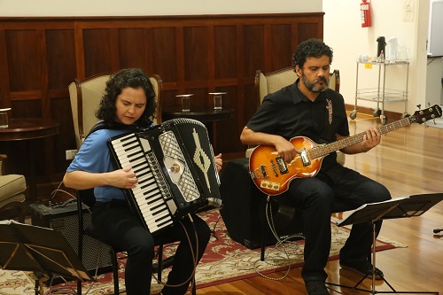 A inauguração da Exposição "Memória e Pandemia: o heroísmo dos profissionais de saúde" contou com a presença de profissionais de saúde, magistrados, professores, servidores e estudantes. Para celebrar o tema da mostra, a solenidade contou, ainda, com apresentação dos músicos Marina Camargo (acordeão) e Marcelo Pereira (violão), que executaram clássicos da música brasileira.