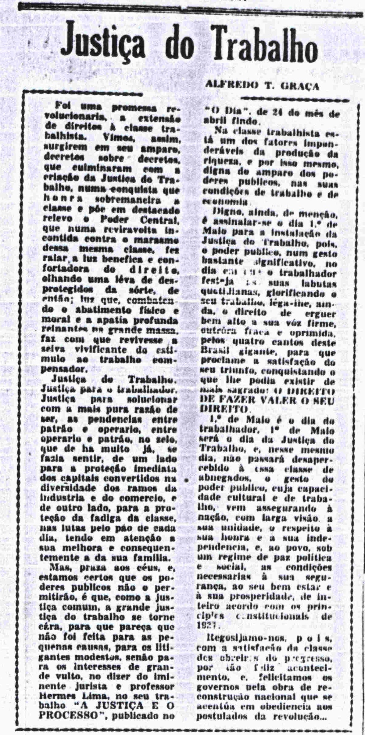 Aborda a criação da Justiça do Trabalho no Brasil, comentando que essa justiça especializada seria um avanço para as relações trabalhistas.