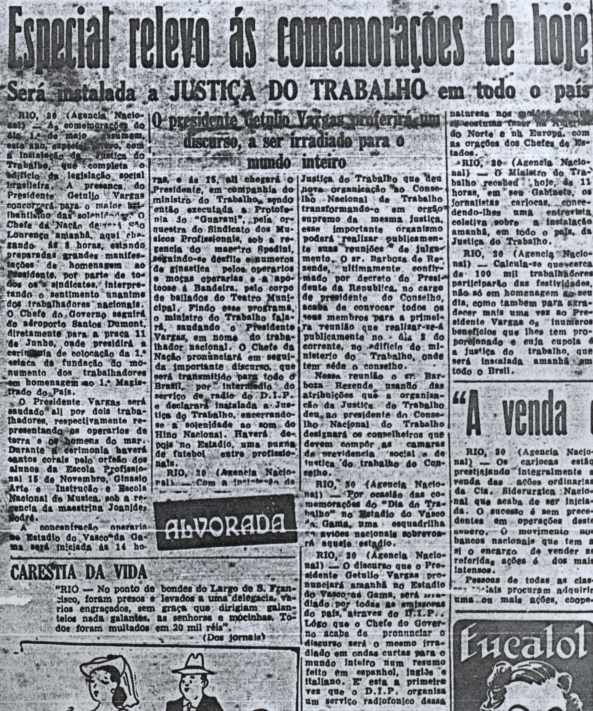 Relata a instalação da Justiça do Trabalho em todo o país na data em que se comemora o dia do trabalho