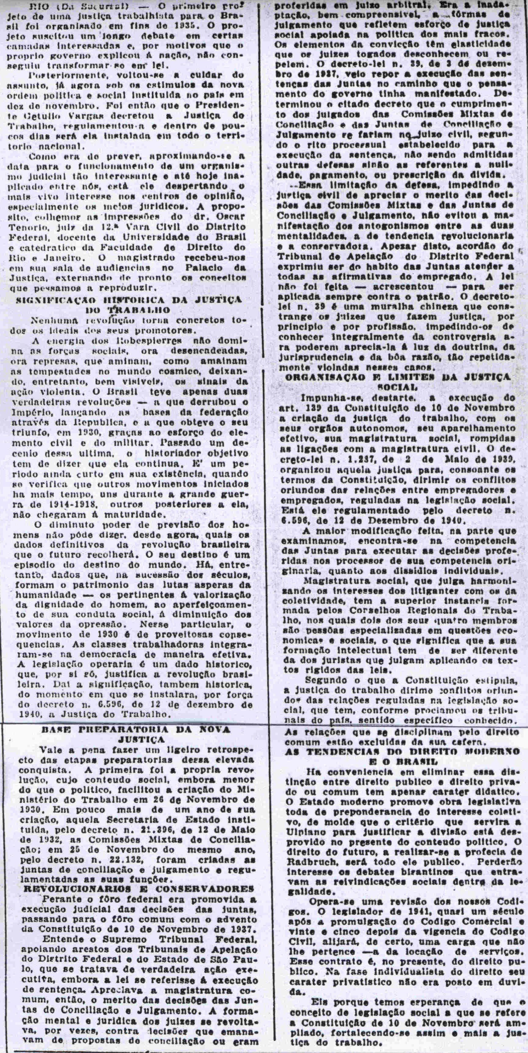 Aborda o significado histórico da Justiça do Trabalho e faz retrospectiva das etapas preparatórias para a sua instalação